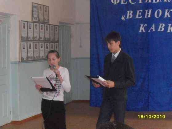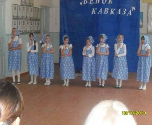 В ноябре месяце в нашей школе прошёл семинар вожатых района, где мы также затронули тему интернационального воспитания детей. Подготовили и провели фестиваль «Венок Кавказа»,где каждый класс спел песню или танец того или иного народа, а также оформили альбом ,где рассказали о культуре данного народа. Учителя и учащиеся с большим интересом готовились к этому мероприятию ещё с сентября месяца. И в итоге мы увидели зажигающий танец «Лезгинку»(5кл.),танец «Симд»(6 кл.)кабардинский танец (7 кл),уч-ся начальной школы исполнили русские народные танцы «Берёзку»и «Кадриль».9- ти классница АШРАКАЕВА Марина исполнила еврейскую песню «Хава Нагила».Никого не оставила равнодушным головокружительный танец «Цыганочка» в исполнении 8 класса. И вообще каждое выступление зрители провожали долгими бурными аплодисментами.