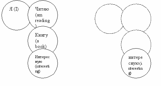 Поясним сказанное анализом предложения: Я читаю интересную книгу. Непрерывность синтаксических связей в этом предложении можно изобразить в виде первой цепочки: