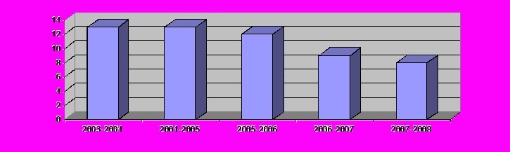 | Учебный год. | 2003-2004 | 2004 -2005 | 2005-2006 | 2006-2007 | 2007-2008 |