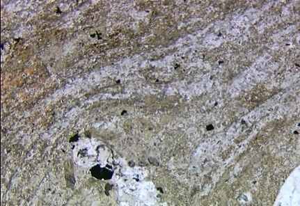 Как и в шлифах Севро-Даниловского месторождения, зачастую наблюдается флюидальность в породах других месторождений (рис.10):