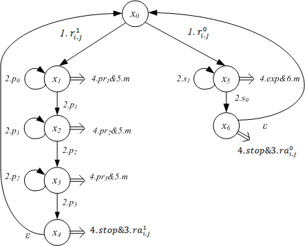 , где i – номер звена (1- головное, 3 – хвостовое), j – номер КЭ (j=(1, 2, 3, 4)). Входной алфавит: