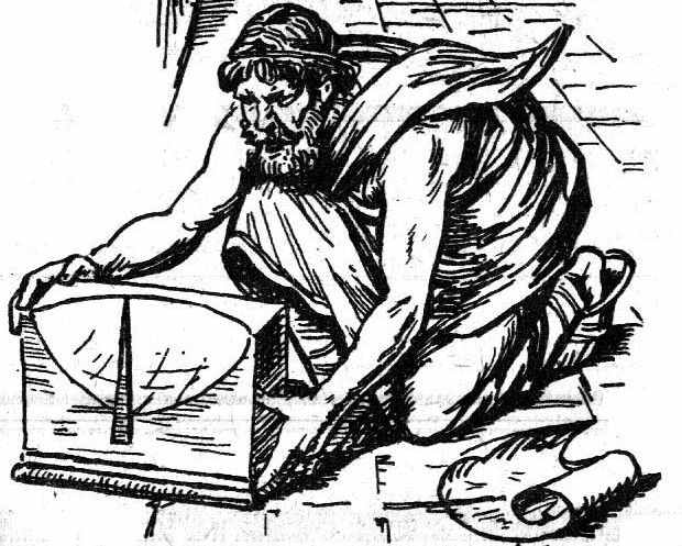 редставник давньогрецької школи, математик, астроном Ератосфен Кіренський (276–195 р до н. е.) розробив і випробував метод визначення розмірів нашої планети. На цей час було достовірно відомо, що Земля має форму кулі, що неодноразово, підтверджувалося спостереженнями місячних затемнень і зникненням кораблів за лінією горизонту. Мандруючи Єгиптом, Ератосфен з’ясував, що, починаючи з певного місця, тінь від предметів може відкидатися не тільки на північ, а й на південь. У місті Сієна, що знаходилось у цій зоні, двічі на рік Сонце освітлює дно найглибших криниць. Зрозумівши, що причиною цього є викривлення земної поверхні, зумовлене формою Землі, Ератосфен розроблив метод оцінки її радіуса на основі спостережень за сонячною тінню, яку утворював гномон скафіса (сонячного годинника). Перебуваючи у Александрії у той день, коли у Сієні Сонце стоїть в зеніті, він визначив відстань Сонця від точки зеніту. Це відхилення виявилось наближено 1/50 довжини кола (7,2º). Поклавши, що Земля має форму точної кулі, та скориставшись даними торговців, які прокладали шлях між Александрією та Сієною про відстань між цими містами у грецьких стадіях, Ератосфен визначив довжину великого меридіонального кола. За його розрахунками воно складає 252 000 стадій, або наближено 46 000 км. Похибка Ератосфена була досить невеликою порівняно з сучасними даними. Вона викликана перш за все неточністю одиниць виміру відстаней, неточними картами, а також тим, що Ератосфен вважав міста Александрію і Сієну такими, які лежать на одному меридіані, хоча різниця довгот між ним складає близько половини градуса. Незважаючи на це, його роботу вважають першим науково обґрунтованим методом визначення розмірів нашої планети. Ідея роботи