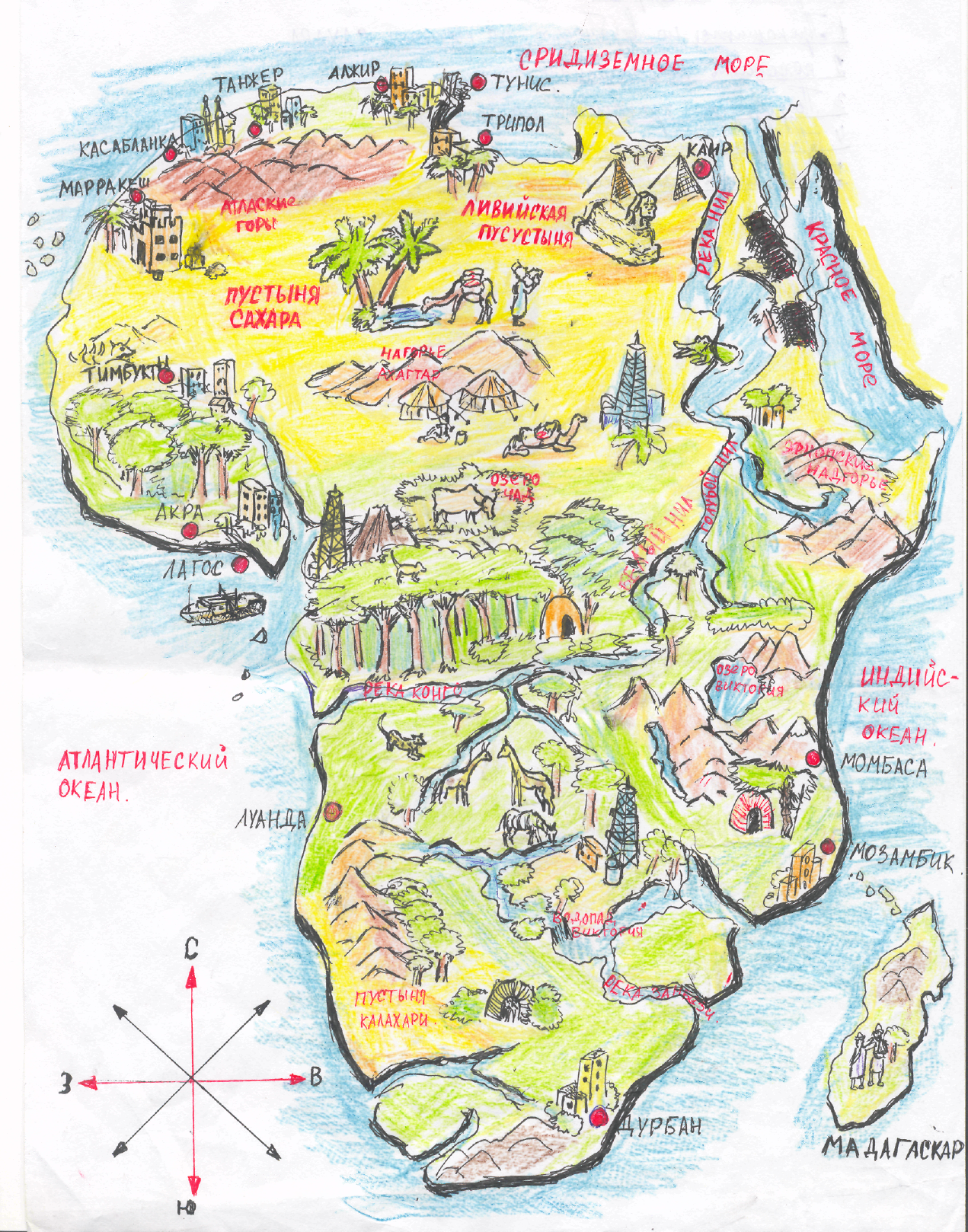 | 4 | Выполнение | Оформление проекта. | Выполняют исследования и работают над проектом. Оформление проекта. Наносят на альбомный лист контуры Африки. | Наблюдает. Советует. Комментирует. Координирует деятельность уч-ся |
