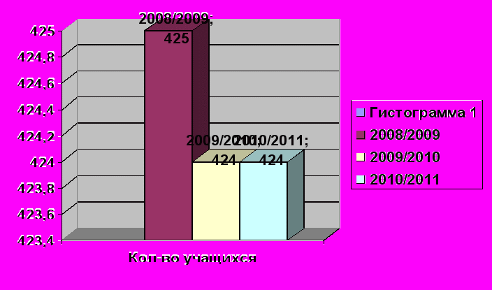 | 2.Количество учащихся на конец года | 51 | 42 | 44 | 44 | 31 | 39 | 42 | 40 | 34 | 28 | 29 | 424 | ||