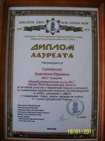 олошенко Анастасия стала одним из пяти лауреатов Всероссийского конкурса.