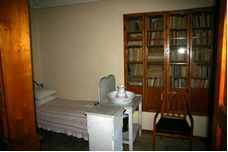 Над столом полка с книгами, составившими круг чтения писателя последних месяцев его жизни. На круглом столике - роман Ф.М. Достоевского «Братья Карамазовы», который читал Толстой накануне ухода из Ясной Поляны. У двери в спальню стоит фонограф, присланный в 1908 г. Т. Эдисоном. Л.Н.Толстой продиктовал в него несколько писем и начало статьи "Не могу молчать".