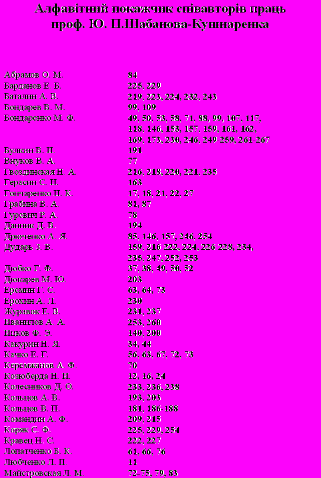 | Шабанов-Кушнаренко С. Ю. | 244, 258, 262-267 |