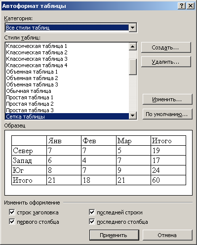 - Выбором команды Таблица > Выделить > Таблица (Table > Select > Table) выделите всю таблицу (при выполнении этой команды текстовый курсор должен находиться в одной из ячеек выделяемой таблицы) и выберите в раскрывающемся списке Стиль (Style) панели инструментов Форматирование (Formatting) пункт Обычный (Normal).