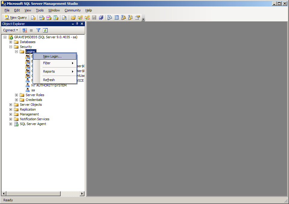 В разделе Security\Logins создать логин пользователя (Рис. 67).