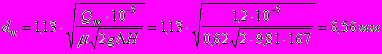 где m — коэффициент расхода шайбы (m = 0,62 для шайбы с тонкой стенкой); g = 9,8 м/с. В результате подстановки в выражение получим, что dш = 6,56 мм.