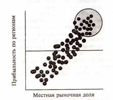 Рассмотрим механизм получения прибыли при использовании данной модели на примере деятельности ведущей американской компании, предоставляющей медицинские услуги. Анализ структуры ее расходов показывает, что большая часть затрат по своей природе относится к местному типу. Другими словами, здесь важное значение имеет не национальная шкала сопоставления с конкурентами, а местное лидерство. В ходе одного проведенного исследования было показано, что прибыльность 300 филиалов зависит от степени их влияния на местном уровне; кроме того, итоговые результаты позволили выявить доминирующий образец.