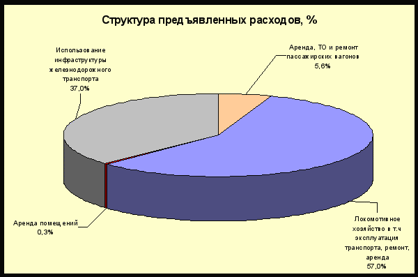 В составе себестоимости 86% занимают расходы предъявляемые ОАО «РЖД» и другими компаниями, за услуги по осуществлению перевозок пассажиров в пригородном железнодорожном сообщении. Предъявляемые расходы за услуги составили 490 333 тыс. рублей и к базовому периоду возросли на 25% или 97 359 тыс. рублей Расходы по направлениям распределены следующим образом.