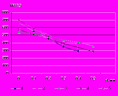 | Глубина, мм | Пов. тв-сть, HV 1 | Толщина слоя соед., мкм | ||||