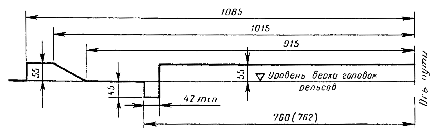 г) Для подвижного состава, проходящего по всем путям железных дорог Союза ССР колеи 1520 (1524) мм, включая пути сортировочных горок, оборудованные вагонными замедлителями при любом их положении, и пути, оборудованные устройством для надвига вагонов (см. черт. 6).