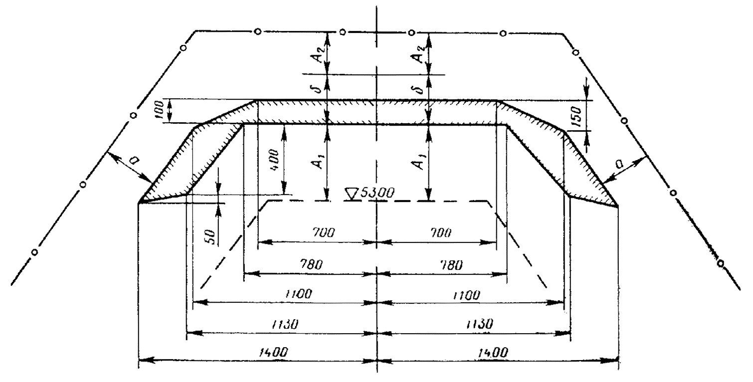a1 = 672 мм, а2 = 762 мм - при ширине колеи 1524 мм.