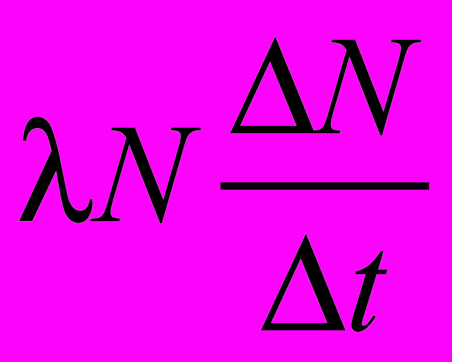 В таких случаях скорость распада = const. Экспериментально скорость распада определяется за конечный интервал времени t.