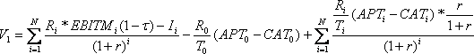 Прогнозировать FCFF отдельно на каждый период из бесконечного числа периодов затруднительно практически и лишено смысла, так как вклад слагаемых с большим i мал из-за знаменателя, а ошибки в расчете числителя мало влияют на конечный результат. Поэтому, при решении данной модели автор применяет следующий подход: