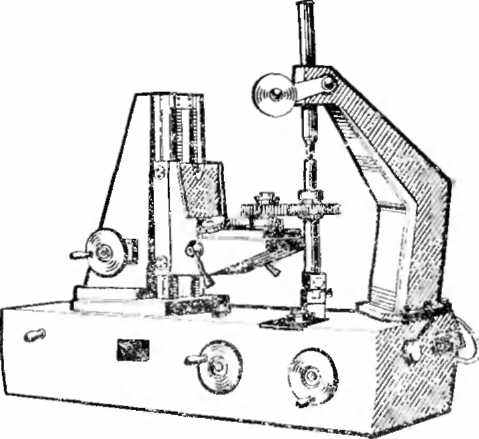 Кроме пятна контакта, контакт зубчатых колес оценивается по направлению зуба, а также по погрешности формы и направления контактной линии. Проверку производят либо на приборе для контроля направления зуба, либо на универсальном контактомере БВ-5028, показанном на рис. 95.
