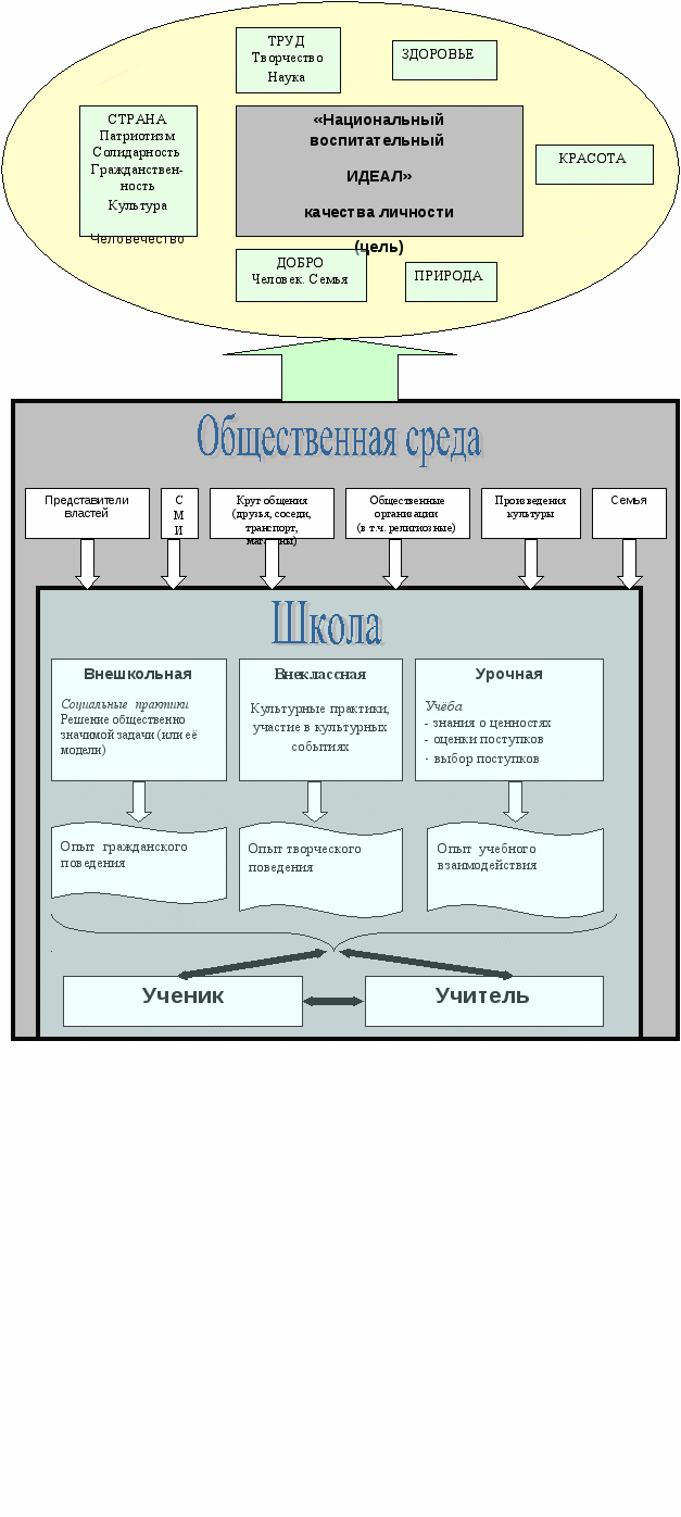 Соответственно воспитание – это процесс принятия человеком важных правил и идей (ценностей), которые определяют поведение человека в обществе на разных ступенях его развития. В педагогическом смысле воспитание – процесс не стихийный, а целенаправленный, осознаваемый и педагогом, и учащимися. Следовательно, воспитательная цель – развитие определённых человеческих качеств личности, отражающих своеобразный нравственный портрет школьника.