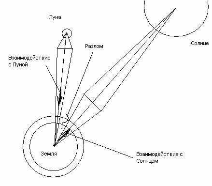 Разломы и сдвиги земной коры по разломам, провоцирует гравитационное взаимодействие Земли с Солнцем и Луной. И если гравитационное взаимодействие с Солнцем выгибает земную кору от центра Земли, то взаимодействие с Луной, наоборот, прижимает земную кору к центру Земли. Земная кора постоянно деформируется и за миллионы лет сформировались тектонические разломы земной коры.