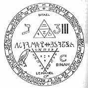 Абсолют (Алеф) Этот пентакль полезен для вступающих на путь духовного развития. Медитируйте на пентакль. Встаньте лицом к западу, медленно вдохните носом, подайте корпус немного вперед. Затем медленно выпустите воздух через рот, на выдохе произнося "Аум": А.......У........ММ. Это чрезвычайно живой слог, обладающий силой Божественной мысли, принимающий непосредственное участие в Извечном Движении.