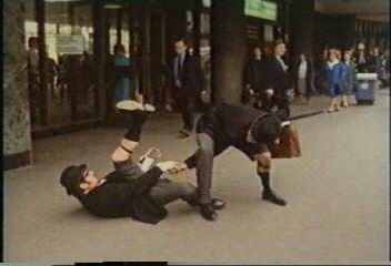 Другим примером может служить кадр из скетча «New Gas-cooker», когда перед домом миссис Пинет выстроилась очередь из газовщиков длиною во всю улицу (рис. 5-6).