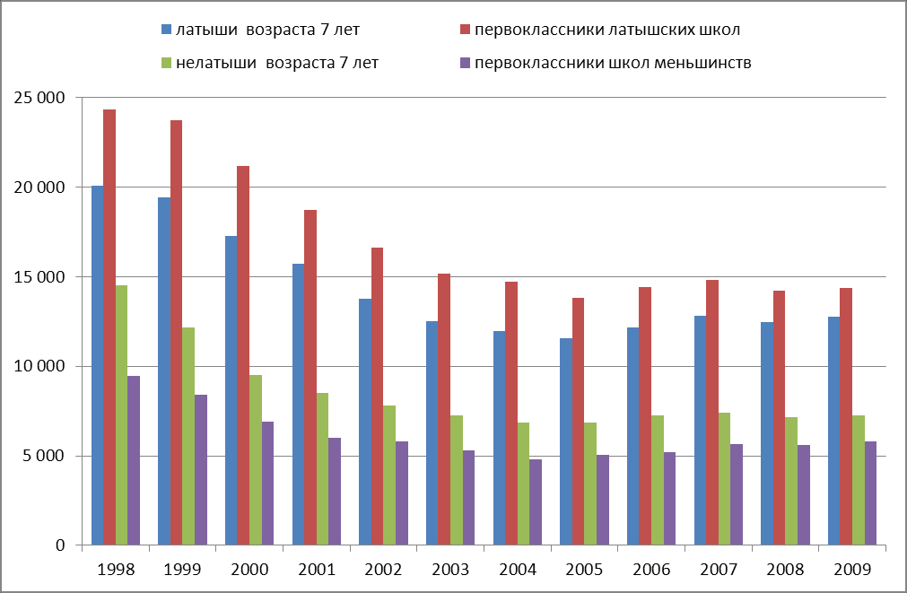 Их число в латышских школах существенно выше численности латышей – семилеток. А для нелатышей – в точности наоборот. Перед вами зримая картина ассимиляции детей нелатышей.