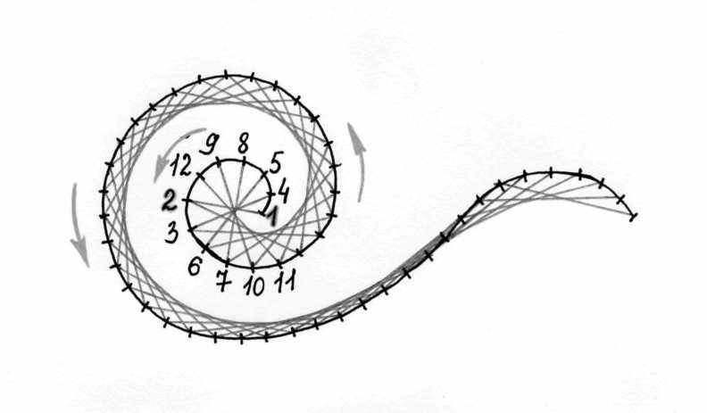 | 7. | Одну и ту же окружность можно вы- полнить при хордах разной длины ни- тками разных цветов. | ![]() |