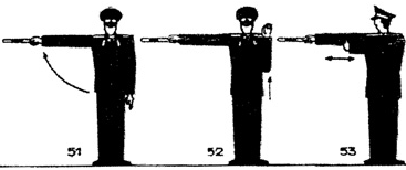 5.2. Остановка транспорта, идущего на правый поворот. Исходное положение - стойка: правая рука в сторону (рис. 51).