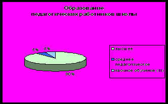 Образовательный уровень педагогических работников составляет 90% с высшим образованием, 1-5% среднее специальное образование и 1-5% обучается заочно в Столичной гуманитарно-финансовой академии на факультете психологии.