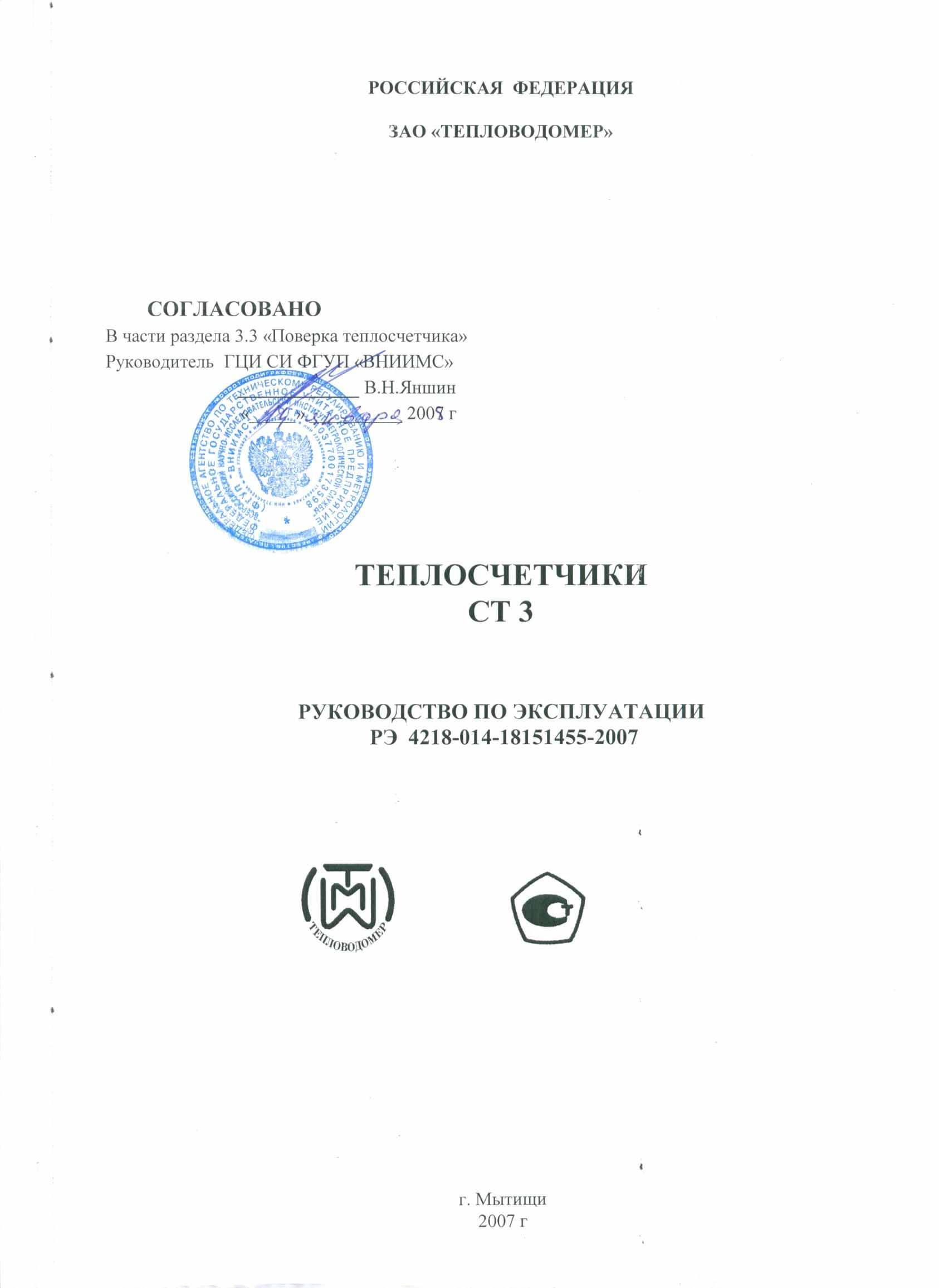 Настоящее руководство по эксплуатации (в дальнейшем РЭ) является документом, удостоверяющим гарантированные изготовителем основные параметры и технические характеристики теплосчетчика СТ 3. Кроме того, РЭ позволяет ознакомиться с его составом, устройством и принципом работы, работой функциональных блоков теплосчетчика, а также устанавливает правила эксплуатации в выбранном режиме измерения.