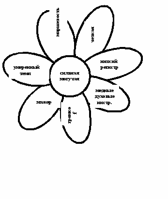 - Одновременно от каждого ряда вызвать по три человека для выполнения творческого задания: из цветных лепестков, с указанными на них различными элементами музыкальной речи, выбрать лепестки с правильными ответами и собрать «цветик-семицветик», который будет характеризовать одну из частей симфонической картины «Три чуда».