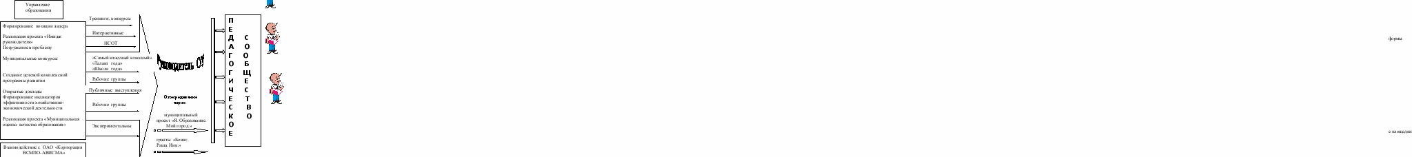 Тезис 5. Взаимодействие Управления образования и Благотворительного Фонда «Истоки» в получении гранта «Боинг. Раша. ИНК.» для реализации муниципальных проектов «Окружающая среда и здоровье», «Тропинка к здоровью». Осуществление этих проектов предполагает, что стратегия лидерства будет реализована через проектную деятельность руководителей, педагогов, родителей и детей с выходом на новые мега-проекты.