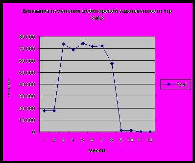 На примере графика динамики изменения дебиторской задолженности стр. 246.2 в сентябре 2010 года наблюдается резкое снижение задолженности за счет реализации договора переуступки права требования по ООО «Оренбургский а/ц КамАЗ».