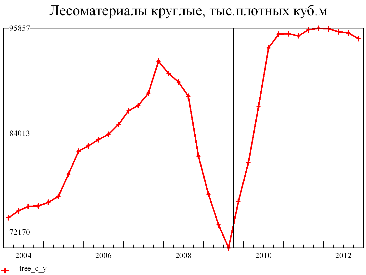 Лесоматериалы круглые,тыс.плт.куб.м 22757.3 26055.3 26795.0 19430.9 23414.6 26216.6