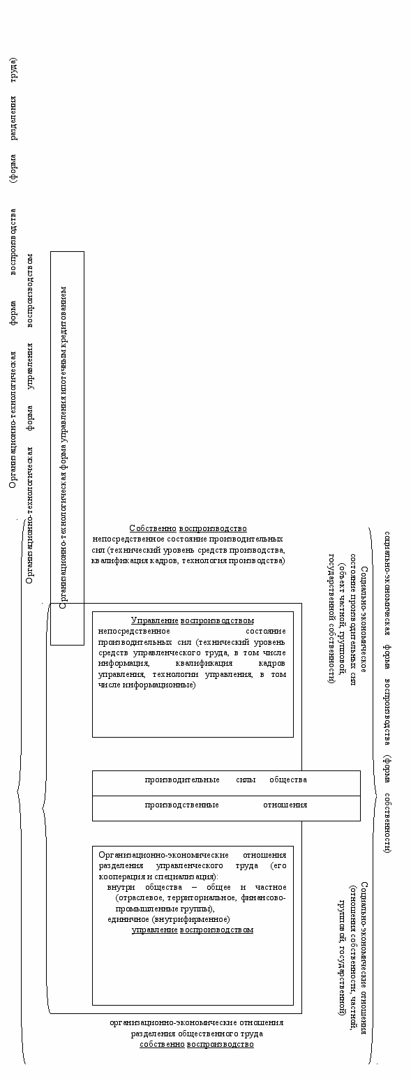 В системе общественного воспроизводства одни и те же отношения являются одновременно отношениями собственности и разделения труда, с одной стороны, и отношениями управляемой и управляющей подсистем, – с другой. В этом состоит сложность достижения соответствия между ними, так как физическими «носителями» этих отношений являются одни и те же работники, кадры различной квалификации. Например, управляющим может быть как собственник, так и наемный работник.