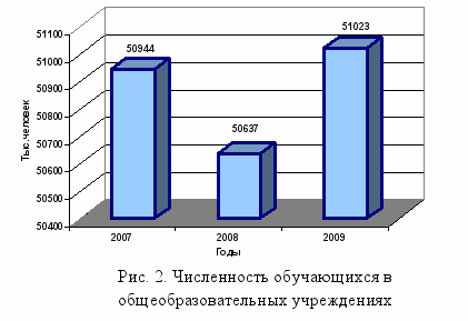 В 2009-2010 учебном году в общеобразовательных учреждениях города Ярославля обучалось 51023 школьника. Функционировало 2308 классов, из них общеобразовательных - 2019, специальных коррекционных 7 и 8 вида - 209, профильных классов - 80.