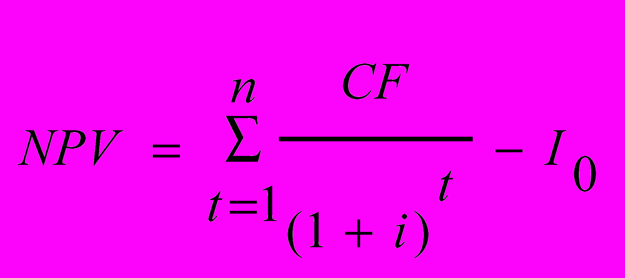 Величина чистого дисконтированного дохода рассчитывается как разность дисконтированных денежных потоков доходов и расходов, производимых в процессе реализации инвестиции за прогнозный период.
