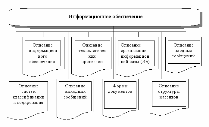 В состав ИО включаются два комплекса: компоненты внемашинного информационного обеспечения (классификаторы технико-экономической информации и документы) и внутримашинного информационного обеспечения (макеты/экранные формы для ввода первичных данных в ЭВМ или вывода результатной информации, структура информационной базы: входных, выходных файлов, базы данных).