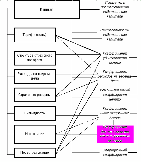 Система факторов позволяет управлять денежными потоками и бизнес-рисками страховщика, достигая заданного уровня финансовой устойчивости.
