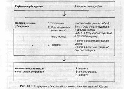 в соответствующем поле (помечая его знаком вопроса), либо, что предпочтительнее, на следующей сессии применяет технику падающей стрелы (см. ниже в этой главе, раздел "Выявление промежуточных убеждений") и определяет значение для пациента его автоматических мыслей.