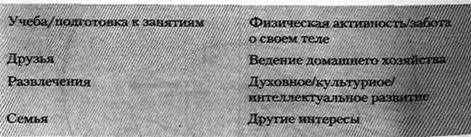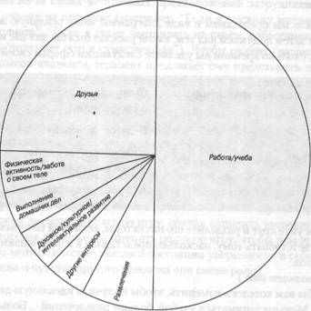 Т: Вначале мы представим в виде диаграммы вашу реальную жизненную ситуацию, а затем подумаем над тем, какой расклад был бы для вас идеальным. Подумайте, сколько времени вы уделяете следующим сферам своей жизни.