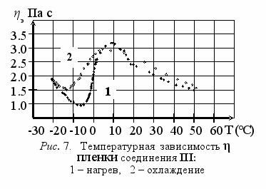 Для соединений IV – VII, проявляющих ФП Cr – SmA , отмечен предпереходный минимум, а затем резкое возрастание вязкости до определенных значений, зависящих от номера гомолога.