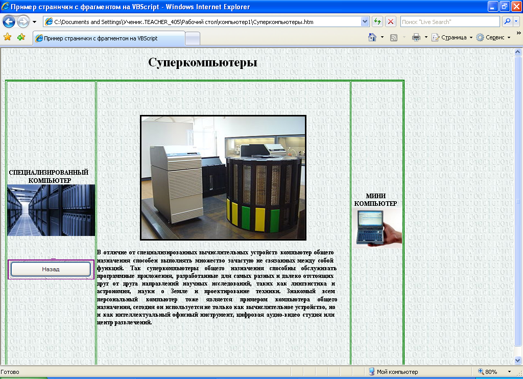Наша работа выполнена и может применяться как учебное пособие. Современная навигация позволяет свободно перемещаться по ссылкам, выбирая нужные разделы. Информационные технологии создания Web-сайтов с использование языка HTML отвечают актуальным потребностям нашего общества.