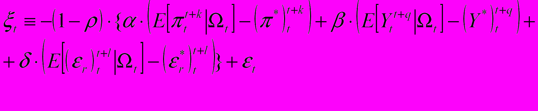 - целевое изменение инструмента КДП в момент времени t, выраженное в форме номинальной ставки процента или темпа роста денежной базы от предыдущего периода к настоящему (как в Правиле Бола 1988). Тогда -