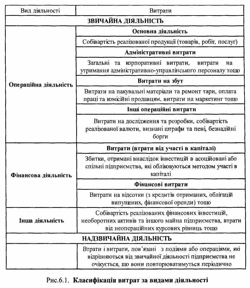 Класифікація витрат за видами діяльності наведена на рисунку 6.1.