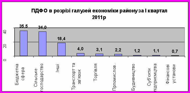Надходження податку з доходів фізичних осіб в розрізі галузей економіки району розподіляється наступним чином.