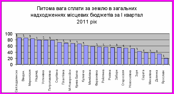 за І квартал 2011 року від загальних надходжень сплати за землю: