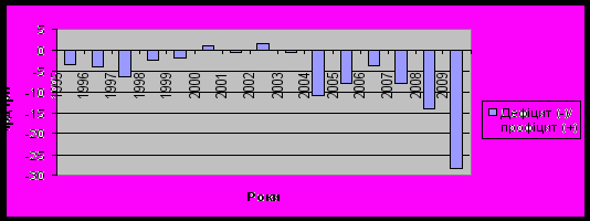Рис. 1. Бюджетний дефіцит / профіцит в Україні за 1995-2009рр.