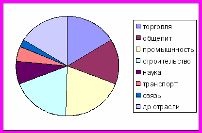 Отраслевая структура по количеству малых предприятий в последние годы практически не изменилась. Распределения малого бизнеса по отраслям представлена в диаграмме.